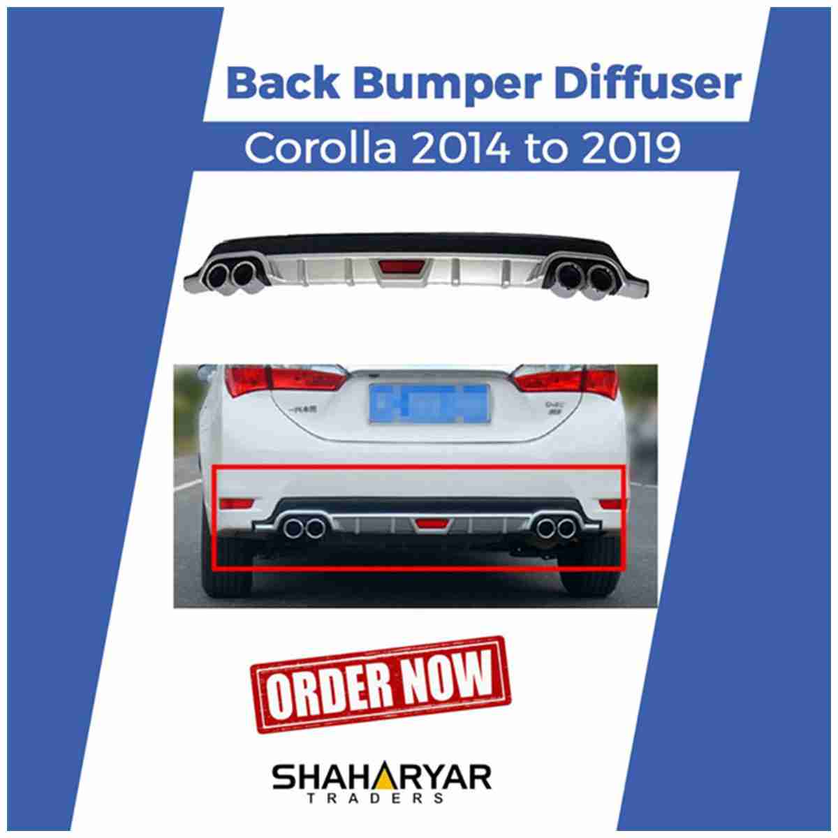 Back Bumper Diffuser Corolla 2014 to 2019 with ABS Plastic