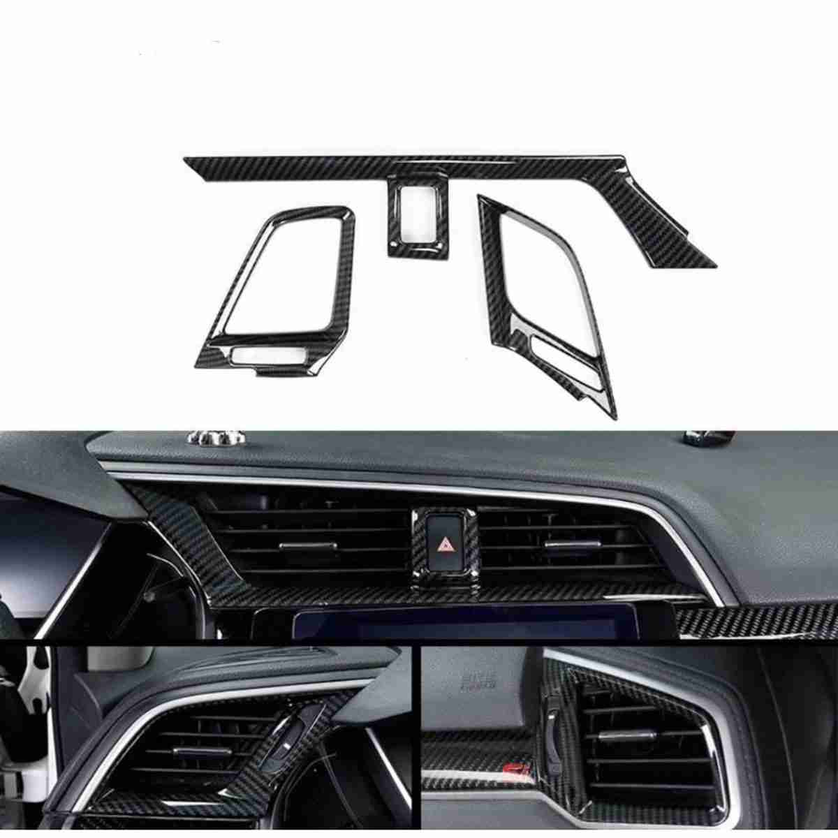 Carbon Fiber Interior Mouldings Front Dashboard Air Vent Outlet Cover Trim For Honda Civic 2016 to 2020