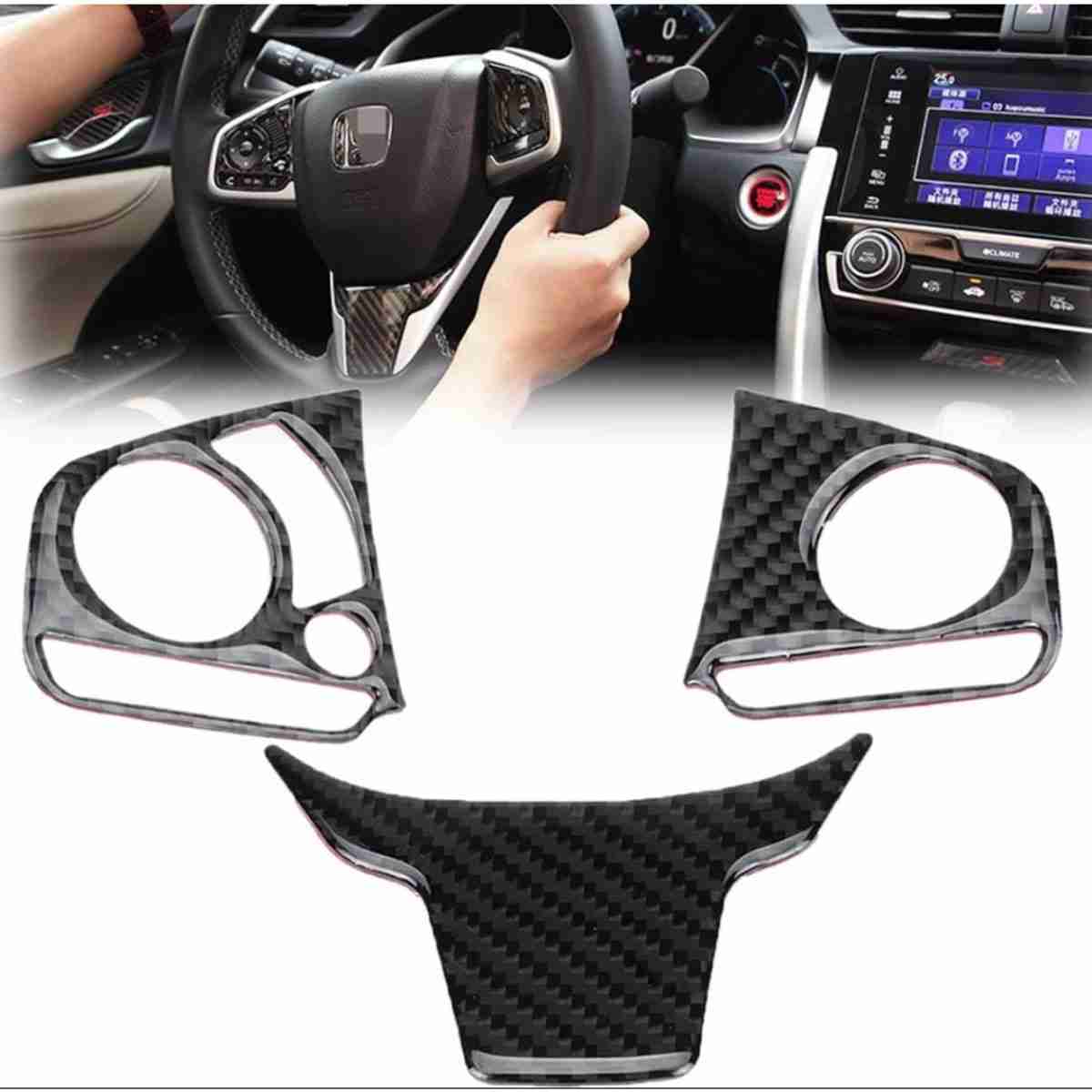 Carbon fiber Steering Multimedia 3Pcs For Honda Civic 2016 to 2021