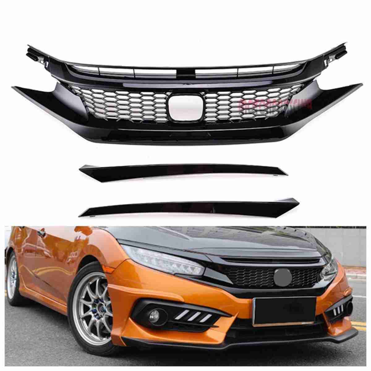Honda Civic 2016 to 2020 Front Grill Honeycomb / Mesh Glossy Black
