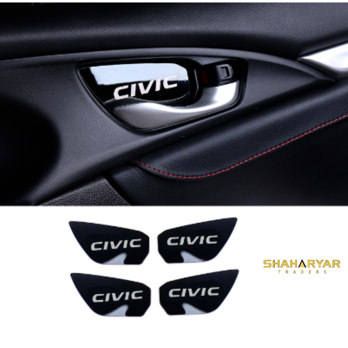 Honda Civic Interior Door Handle Bowl Trim Black 4 pcs - Model 2016-2021
