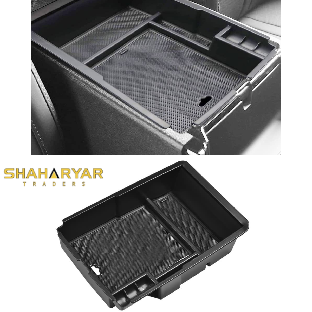 Divide the center console into two layers. You could store things in the center console that you need to get to often without losing them in the black hole at the bottom of the deep console.