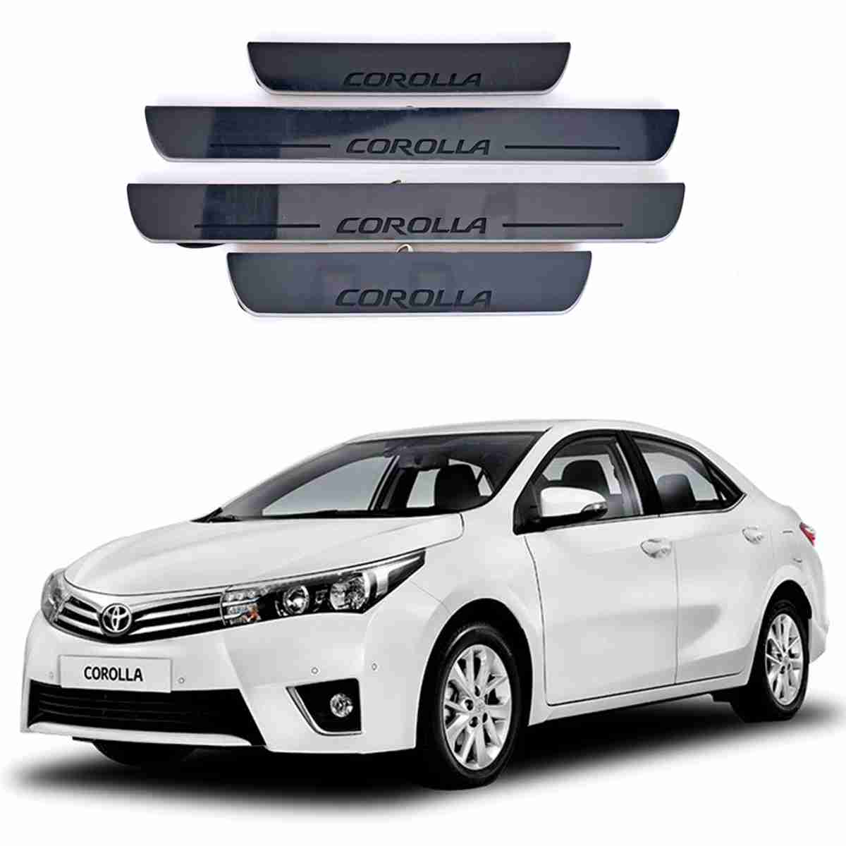 LED Door Sill Protector Plates - Door Sill Scuff Plate Cover Trim Style B - 4 Pcs for Toyota Corolla 2014 to 2017