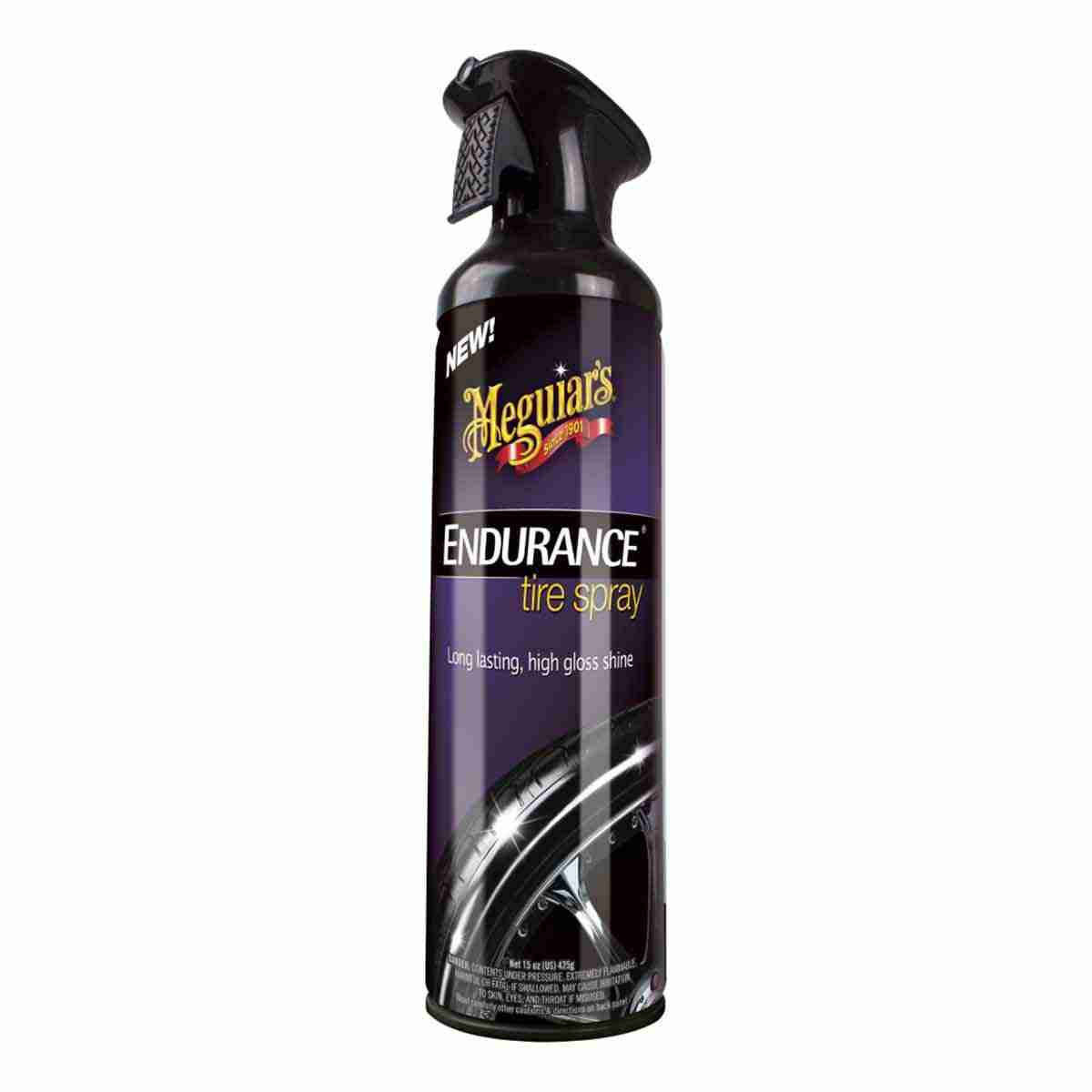 Meguiar's™ best performing, longest lasting aerosol! Endurance® is a significant advancement in tire protection technology. Proprietary macro-polymers and copolymers protect against UV damage and tire browning. The end result is that your tires stay black – with a rich, dark, high gloss shine – for weeks longer than ordinary tyre-shine products. See for yourself why Endurance® is the enthusiast's favourite for high gloss shine that lasts.