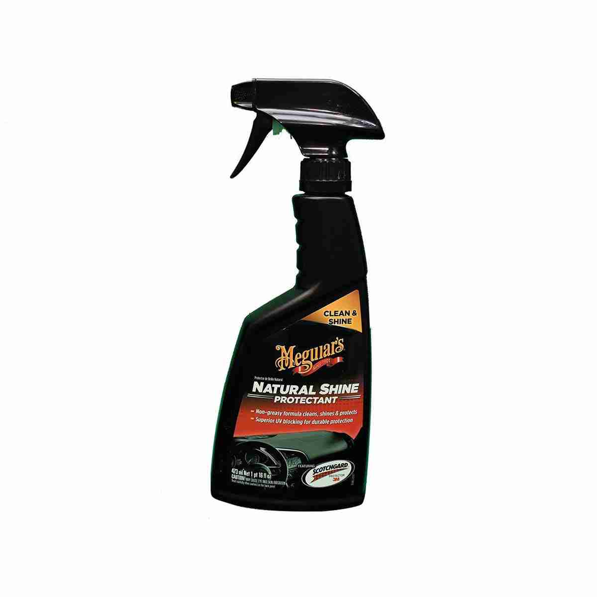Maintain that "like new" look on dashboards, trim, tires and more with Meguiar's Natural Shine Protectant's complex formula includes mild cleaning agents that help remove daily dirt and grime and restore original, natural finish. Includes UV blockers to help reduce the effects caused by the sun.