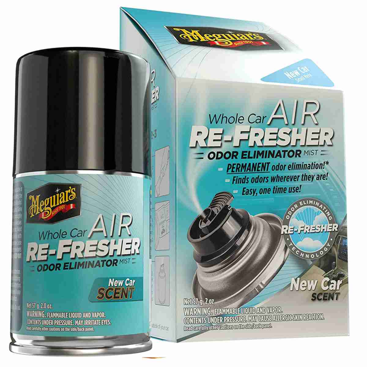 Has your car lost its “new car” smell? Meguiar’s advanced Re-Fresher technology not only removes unwanted odors wherever they hide, but also replaces odors with a pleasant new car scent that lasts for weeks. * Meguiar's Whole Car Air-Re-Fresher penetrates the complete interior by moving through the ventilation system, across the headliner and in-between all other hard-to-reach areas. *Meguiar's Re-Fresher technology permanently removes existing bad odors through chemical bonding at a molecular l