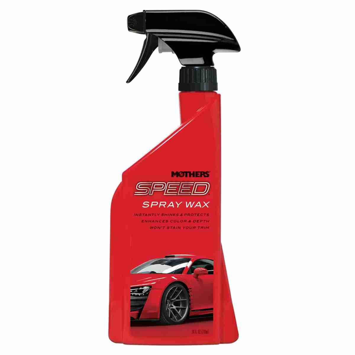 Mothers Speed Spray Wax is your fast track to a perfect show car shine! This supercharged formula does it all, tackling everything from light dust and pollen to greasy fingerprints and road grime. Specially formulated color enhancers and shine fortifiers add gloss, depth and clarity, while giving you that "just waxed" look and feel. Best of all, it won't leave a white residue on trim. Speed Spray Wax works as a booster over your existing wax, or as a stand-alone product, and can even be used t