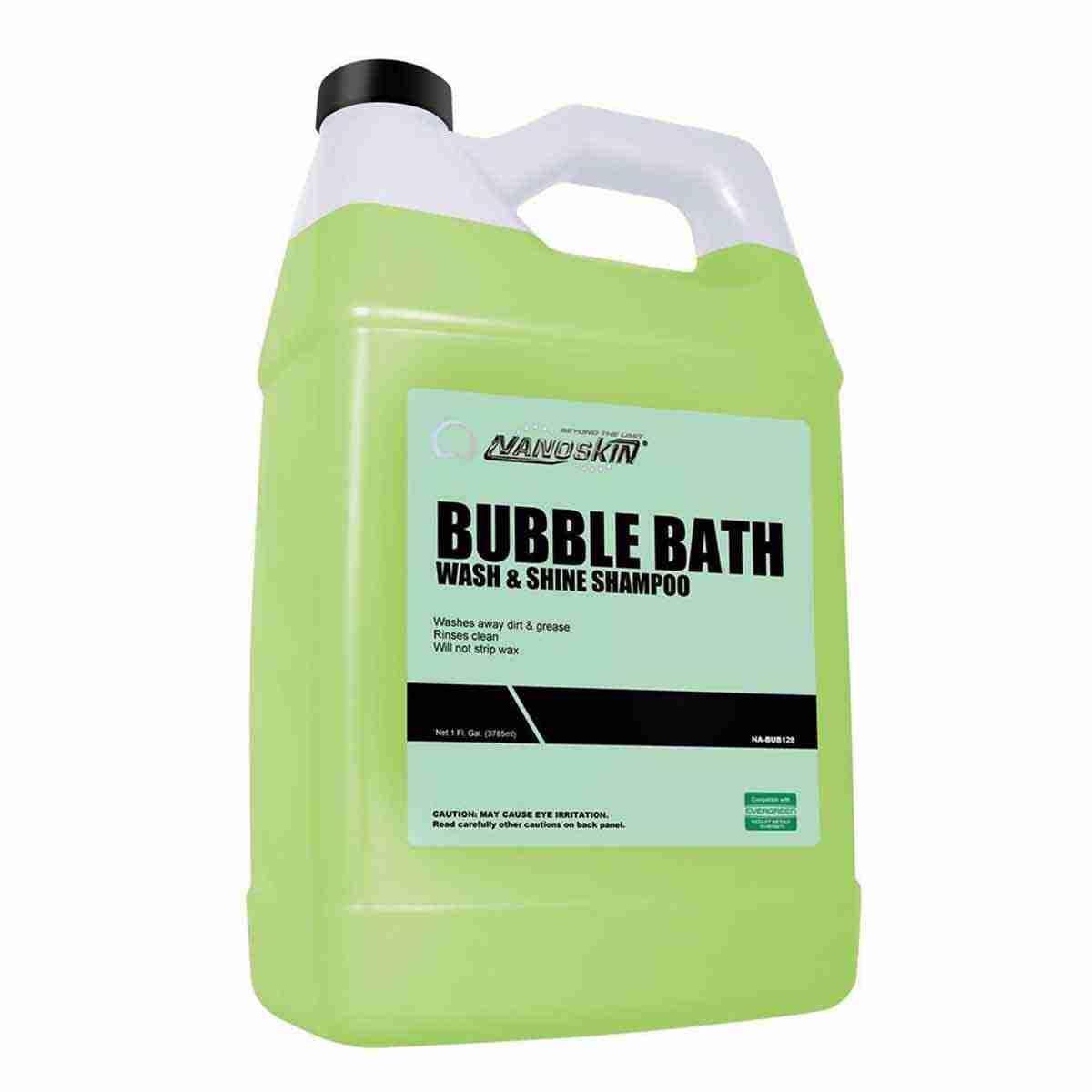 BUBBLE BATH is a thick, super concentrated, high foaming car wash soap. Excellent for hand or automatic washing systems. The thick foam and water sheeting action washes away dirt and grime, while it rinses sparkling clean and streak free. Environmentally friendly and cost effective. Dilutes 1 part BB to 128 parts water. General dilution is 1 ounce per gallon of water. For hand washing, dilute 1 oz of BB to 1 gallon of water. For automatic car wash systems, dilute 1 gallon of BB to 10 gallons