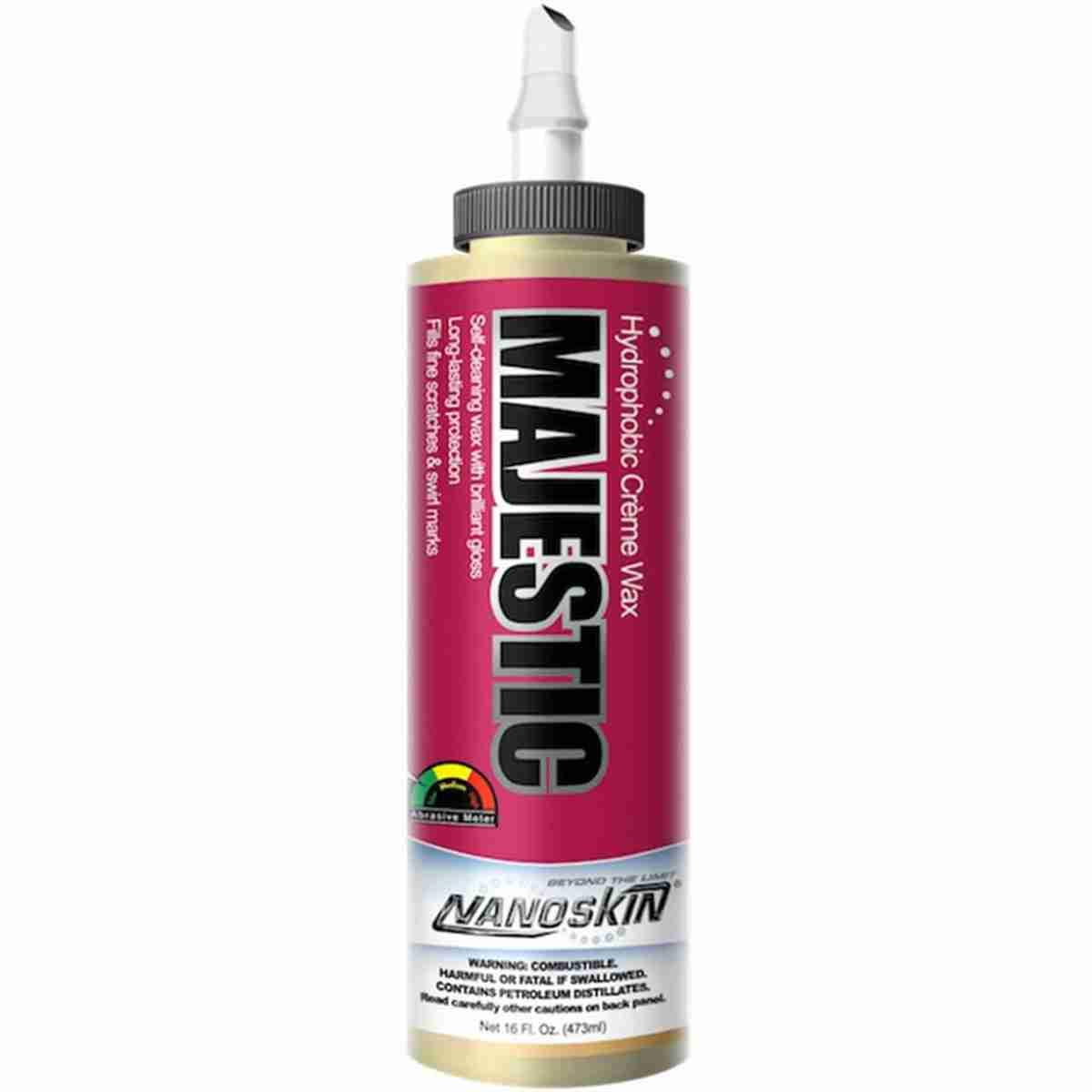 MAJESTIC is a cream wax designed to add a high gloss and rich luster to new or used vehicles. This premium wax is a self-cleaning, high durability formulation that is easy to use by hand or machine and removes surface scratches, spider webs, and swirl marks. Hand or machine application work equally well. Contains pure Brazilian Carnauba Wax and silicones. A low dust application and removal leaves the paint surfaces with a high gloss finish. Excellent for all paint finishes.