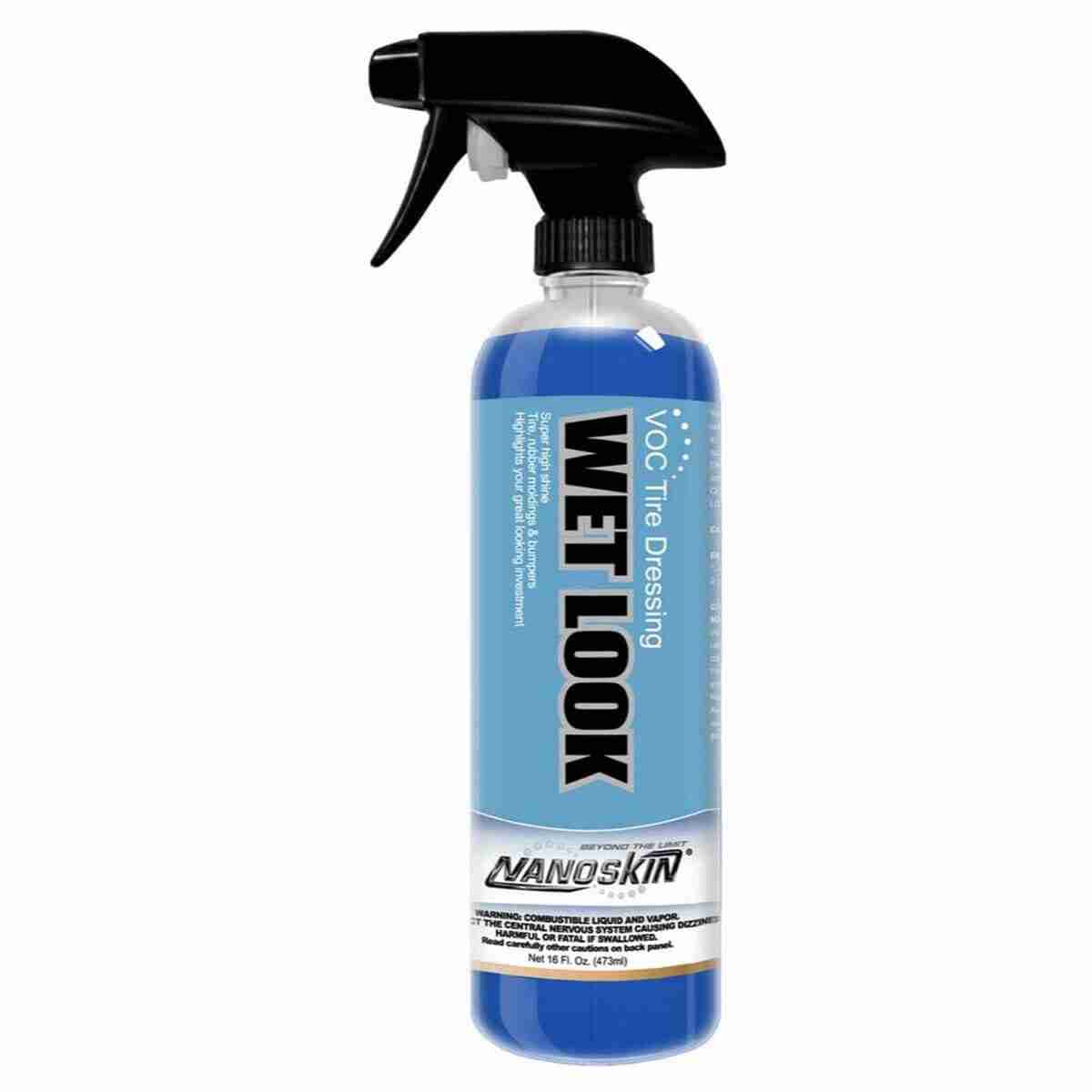 Wet Look Voc Tire Dressing (NA-WET16) by Nanoskin®. Solvent Based. You have waxed and polished your vehicle, removed stains and odors and looked after the Upholstery and leather. Now its time to tackle the shine of your tires. Nothing gets noticed more quickly after waxing than your glossy tires. Nanoskin Tire dressing is a super high shine, silicone based, dressing for exterior surfaces. Brush or sponge application is recommended. Quick dry, low sling-off Formula works great on wet tires. It re