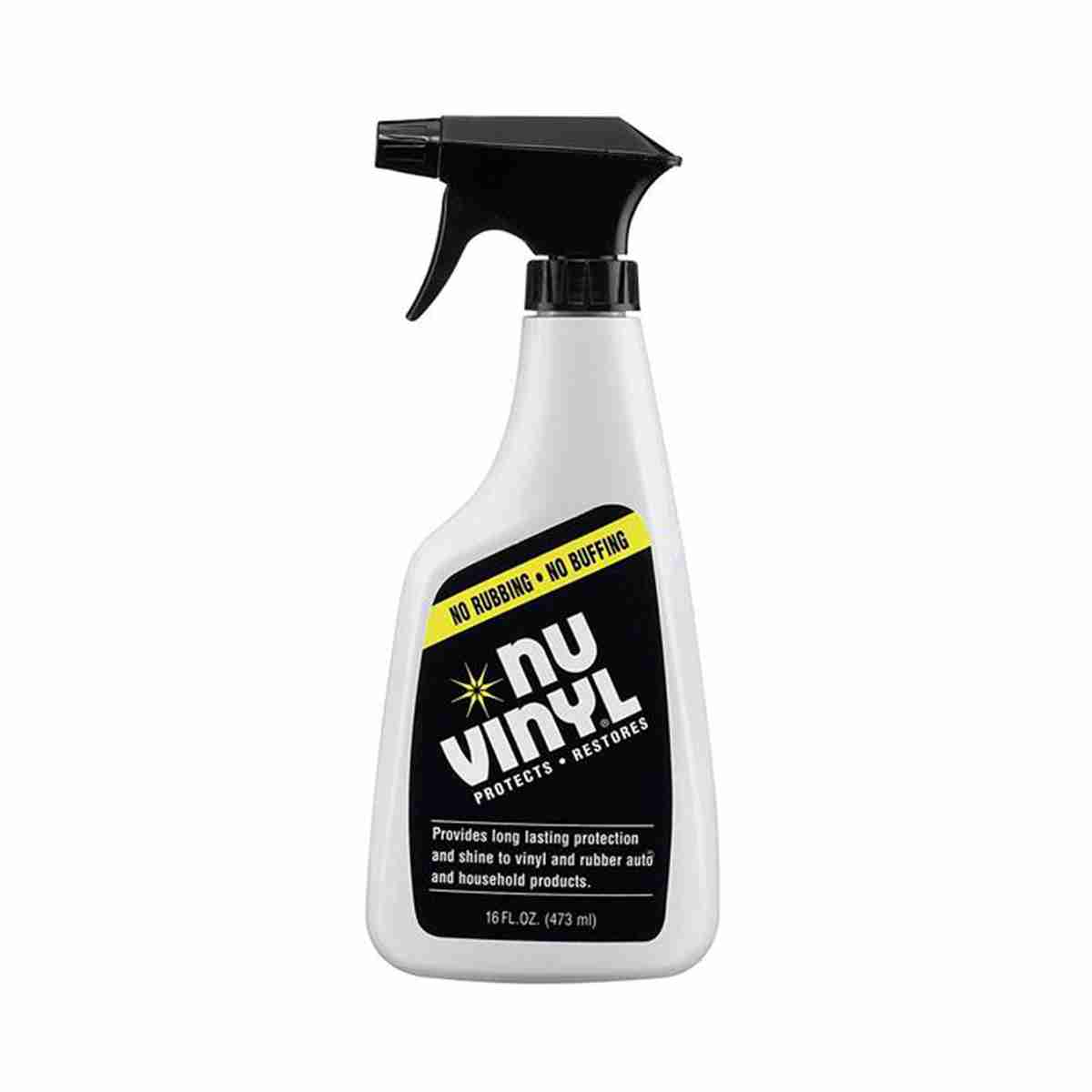Nu Vinyl Car Interior Protection lasts longer than any other vinyl, leather, and rubber protectant on the market. It’s easy to use one step formula that allows dries to a hard, flexible film that won't attract dirt. No rubbing or no buffing formula and available in a 16-ounce bottle. Works great on vinyl and leather upholstery, dashboards, tires, and plastic trim—and even household items such as shoes and boots, luggage, and much more.