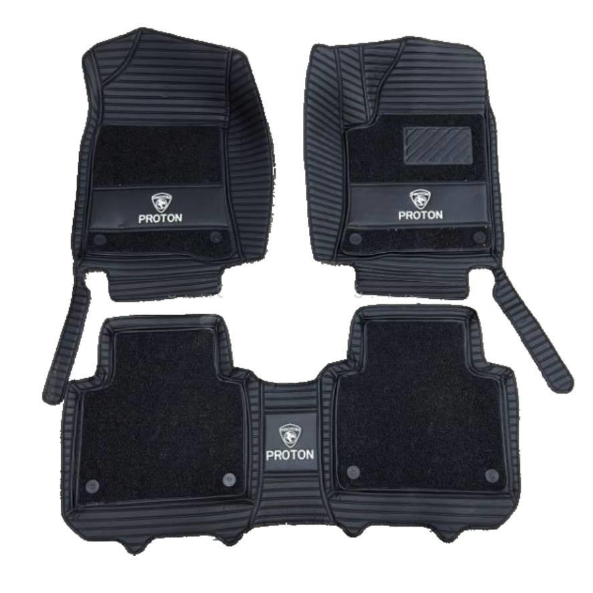 Proton Saga 10D Floor Mats Black With Black Grass 3 Pcs - Model 2021-2022