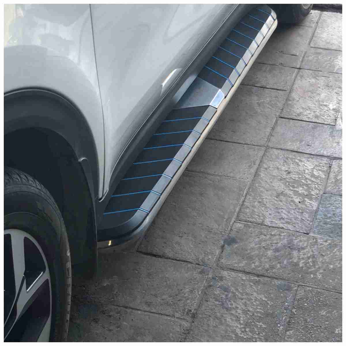 Side Steps Running Boards Nerf Bars Aluminum Rails Black with Blue Lines Version 4 for KIA Sportage 2019 to 2020
