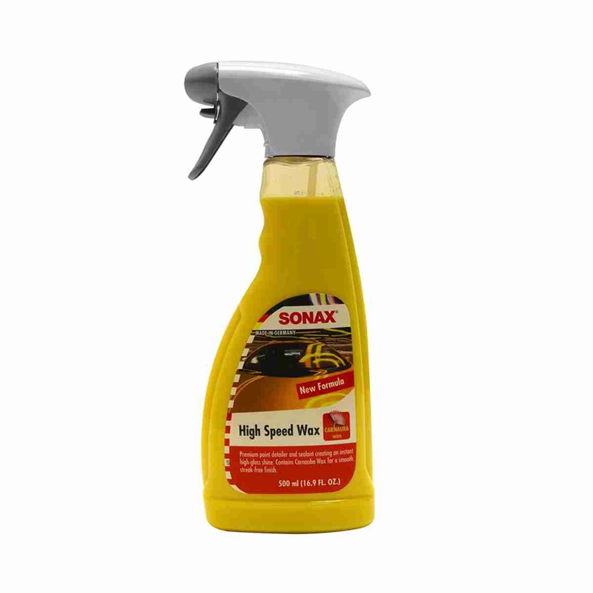2-in-1 Cleaning and Protective Spray Wax. SONAX High Speed Wax is a highly effective, 2-in-1 cleaning and protective spray wax that is easy to apply and long lasting. The formula includes a blend of Carnauba wax (protection) and a special silicone emulsion (shine) that delivers a streak-free, high-gloss finish. Engineered for extreme ease of use. SONAX High Speed Wax is also ideal for maintaining and protecting rubber parts and plastic convertible tops.