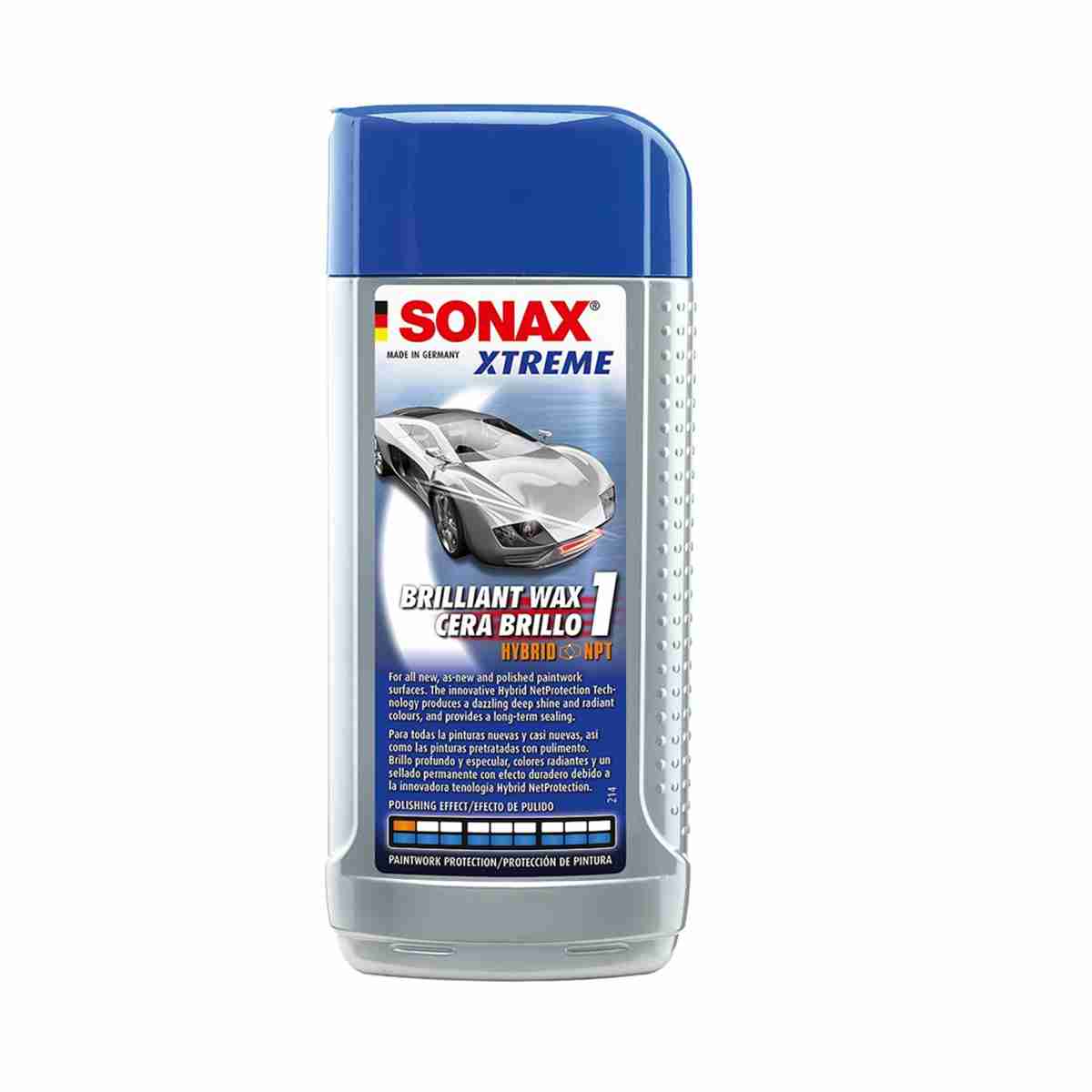 For long-term protection of the paintwork against environmental influences. The Hybrid NetProtection Technology combines special inorganic and organic components to a long-lasting and brilliant protective layer suitable for all types of paint. The surface captivates by gentle smoothness, a brilliant high gloss and an outstanding lotus effect. The strongly interlinked inorganic compounds yield the protective coating's durability, stability and smoothness. SONAX XTREME Brilliant Wax 1 does not lea