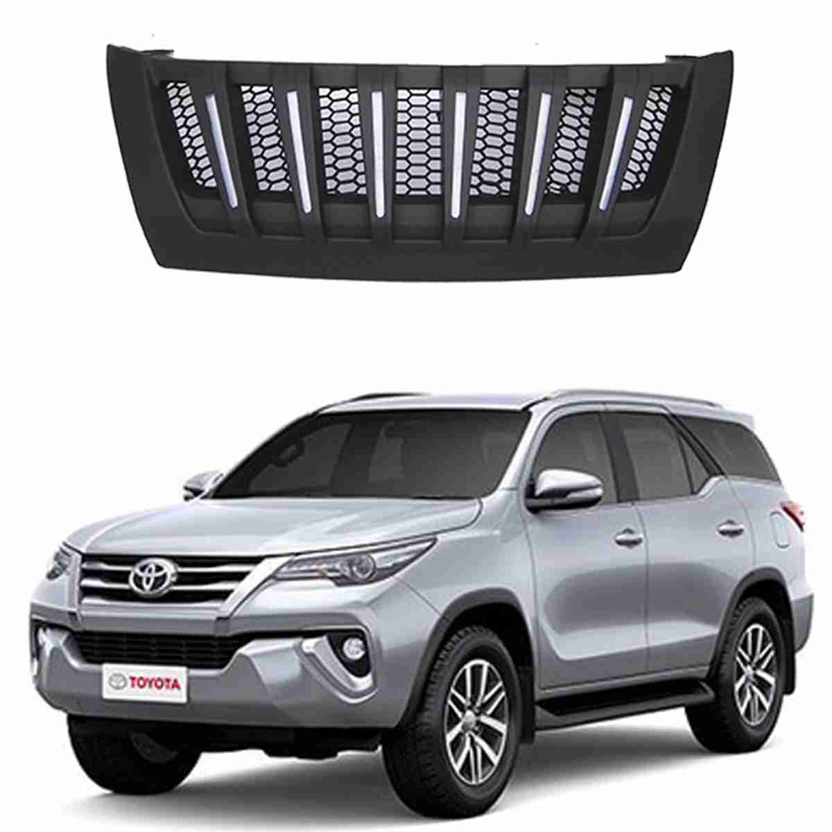 Toyota Fortuner 2017 to 2020 Front Grill Mesh Mat Black with Led