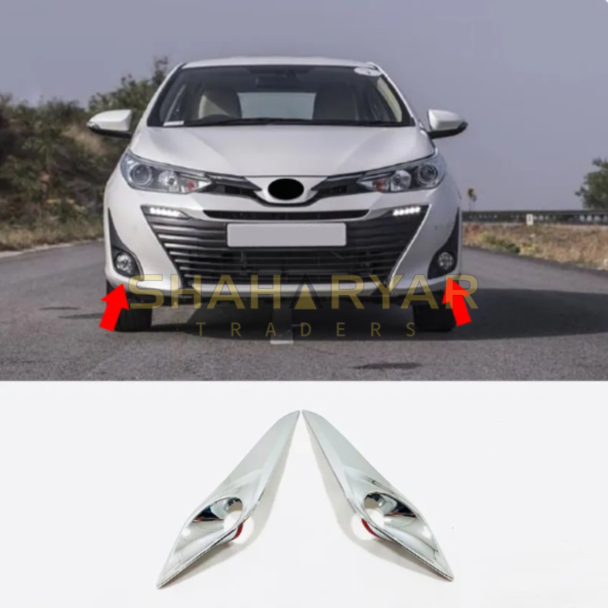 Toyota Yaris Front Fog Lamp Shade Chrome Covers Frame - Model 2017 to 2021
